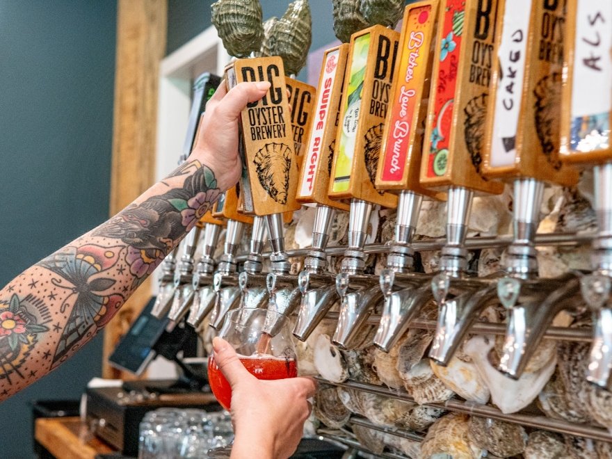 Big Oyster brought me big smiles. So many choices of brew and food. Plenty of seating. Free parking. Best oysters I have had this year! Waiter was a pro! Dog friendly establishment. I will go back! 🍺